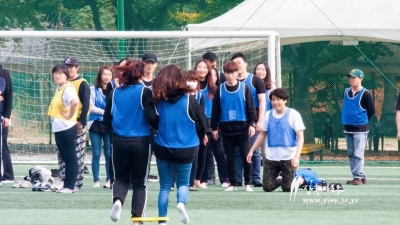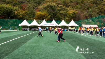 인조잔디 깔린 중운동장에서 명랑운동회를 하는 모습