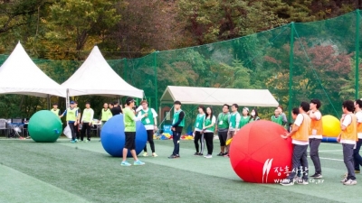 체육대회 패키지 중 명랑운동회 공굴리기 게임하는 모습...