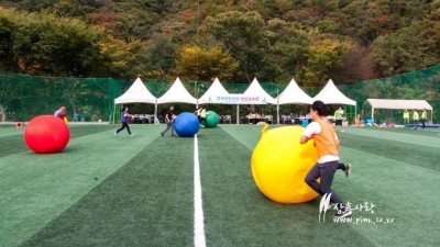 체육대회 패키지 중 명랑운동회 에서 공굴리기를 하는 ...