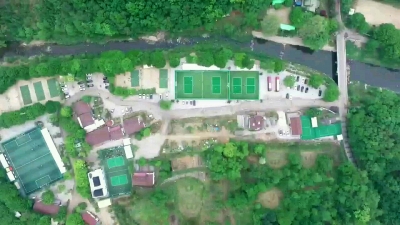 드론으로 하늘 위에서 촬영한 일영유원지 계곡가 그린랜...